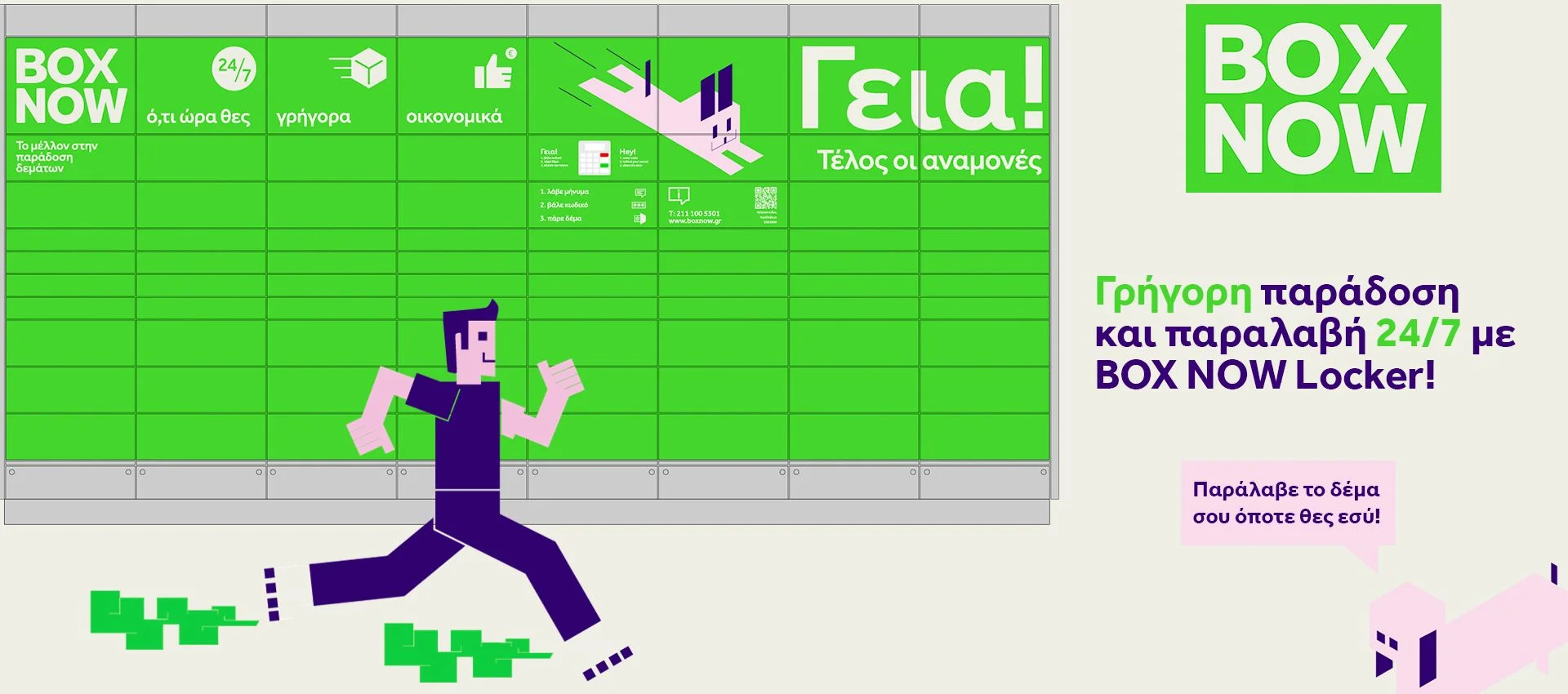 Οι αναμονές τελείωσαν! Ορίζεις εσύ το πρόγραμμα σου! Με τα BOX NOW Lockers, μπορείς να παραλάβεις όποια μέρα & ώρα επιθυμείς, εύκολα και ανεξάρτητα. Όλα τα δέματα παραδίδονται μέσα σε 24 ώρες πανελλαδικά.